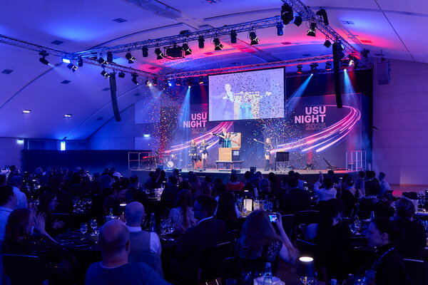 Für die USU AG aus Möglingen, ein international tätiges Software- und IT-Unternehmen, durften wir den SPRING UP! Event erneut als Generalunternehmer realisieren – und damit ein Format, das Information, Austausch und gemeinsames Erleben auf besondere Weise vereint. Über drei Tage hinweg entstand ein Event, das weit über eine klassische Konferenz hinausging: Von der ersten Konzeption über das Location-Scouting bis hin zur vollständigen Umsetzung vor Ort lag die gesamte Verantwortung in unserer Hand. Rund 600 internationale Teilnehmer kamen zusammen, um sich auszutauschen, zu vernetzen und gemeinsam neue Impulse zu setzen. Im Zentrum stand ein umfangreicher Konferenzteil mit einem gemeinsamen Plenum sowie rund 30 parallel stattfindenden Workshopräumen. Sämtliche Flächen wurden von uns mit moderner Tagungs- und Konferenztechnik ausgestattet und individuell auf die Anforderungen der unterschiedlichen Formate abgestimmt – für reibungslose Abläufe und optimale Arbeitsbedingungen. Doch SPRING UP! bedeutete mehr als fachlichen Austausch: Auch die komplette Teilnehmerreise – von der koordinierten An- und Abreise per Bus und Bahn bis hin zum Teilnehmermanagement – wurde von uns ganzheitlich gesteuert. Im Anschluss an den Konferenzteil verwandelte sich das Event in ein vielseitiges Incentive-Erlebnis rund um das Sauerland Stern Hotel. Unterschiedliche Programmpunkte boten Raum für Begegnung und gemeinsame Erlebnisse: von Wanderungen über die Inszenierung der Schanze bis hin zur spektakulär beleuchteten Hängebrücke. Den krönenden Abschluss bildete die USU Night – eine Gala, die Emotion und Inszenierung vereinte. Ein stilvolles Dinner, eine große Bühne für Ansprachen und Ehrungen sowie ein eindrucksvoller Showact in Form einer hochkarätigen Magie-Show sorgten für Gänsehautmomente – bevor der Abend in eine ausgelassene Party mit DJ überging und gemeinsam gefeiert wurde.